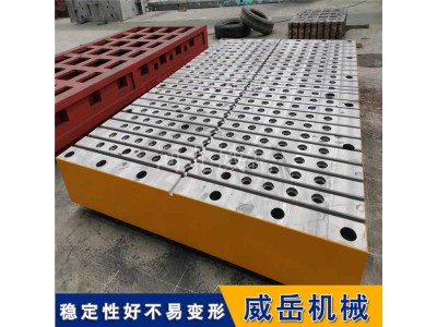 焊后处理与检测:焊接完成后,对焊缝进行打磨、去渣等处理,提高表面质量。随后,使用水平仪、激光测距仪等工具对拼接后的平台进行全检测,确保各项几何精度指标符合设计要求。加固与稳定?:对于大型或重型焊接平台,还需在拼接处增加加强筋或支撑结构,以提高平台的整体刚性和稳定性。在拼接过程中,需特别注意以下几点:一是焊接环境应干燥、无风,以减少焊接缺陷;二是焊接人员需具备资质,熟悉焊接工艺和操作规程;三是拼接完成后,需进行充分的应力释放和时效处理,以防止使用过程中出现变形或开裂。