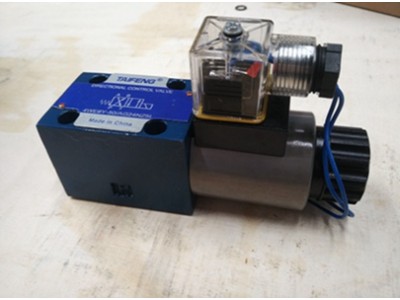 山东泰丰智能控制股份有限公司(原山东泰丰液压股份有限公司)生产的4we6型电磁换向阀是用电磁铁直接推动阀芯移位工作的小型方向控制阀,主要用于控制液体的通断和流动方向,也可以作为先导控制阀,以控制各种大通径的液压阀(电液换向阀或二通插装阀),实现对大功率液压阀的先导控制。其特点是:1.以直动式电磁铁操作方向滑阀作为标准类型;2.安装面符合DIN24340A型ISO4401和CETOP-RP121H;3.带可拆卸线圈的湿式直流获交流电磁铁;4.电磁铁可旋转90度;5.可以迅速而方便的更换电磁铁线圈而不引起液压系统漏油;6.可选的手动应急操作