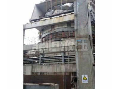 钢天线桅杆及其提升设备。天线杆全长118m,由多段截面形状不同的箱形结构组成,根部提升段为3. 8m*3. 8m正方形。20只液压提升设置在天线杆根部提升段外东、南、西、北四侧,每侧5只。提升器为穿芯式结构,由提升主油缸和两端上、下锚具组成。锚具有6副具有单向自锁作用的契形夹具,在锚具油缸的控制下,夹紧或松开穿过夹具的钢绞线。每只提升器中间穿过一束6根钢绞线,20只提升器共20束120根钢绞线,从350m混凝土单筒体顶部平台(吊点)挂到地面,钢绞线上端用天锚锚固。钢绞线为高强度低松驰预应力型,公称直径15。