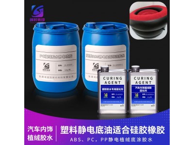高牢度静电植绒喷胶水用于ABS/PP汽车塑料工件PP/ABS/PC塑料硅胶橡胶静电植绒胶水牢度过百格
