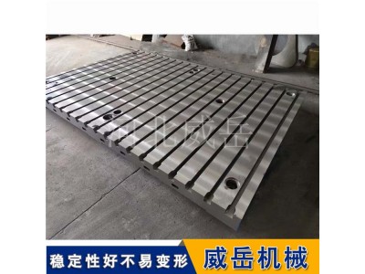 槽深与间距的设计:槽深通常为槽宽的1.2-1.5倍(如22mm槽深26-33mm),过深会穿透台面核心受力层;槽间距建议≥80mm,间距过小会导致台面支撑点不足,受力分散不均。机械车间的T型槽平台因槽间距仅50mm,承载15吨工件时出现局部凸起,检修发现台面内部筋板已断裂。