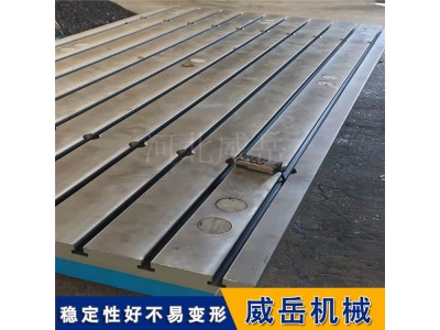 专为机床设备安装量身定制的结构细节,提升适配性与实用性。台面按机床安装标准预设密集型安装螺纹孔与 T 型槽(槽宽 22mm-36mm,间距 150-250mm),可通过 T 型螺栓、压板等配件快速固定机床底座,确保机床与平台的牢固连接,避免运行时产生位移。平台边缘采用斜角打磨处理,无毛刺锐角,方便机床吊装与定位,同时保护操作人员安全。非工作面采用静电喷塑工艺,防锈耐磨且易清洁,能适应车间复杂环境。常规规格涵盖 1000mm×1500mm 至 5000mm×8000mm,可根据机床型号(如立式加工、龙门铣床、重型车床等)的尺寸、重量及安装要求,定制专属台面尺寸、支撑点数量、安装孔布局等,甚至可加装起重吊点、防护挡板等个性化功能,完全适配大型机床的安装场景。