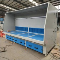 2: 工作原理:烟尘通过风机产生的负压经侧排风口和下排风口进入净化器,经导流板和滤筒过滤后落入集尘抽屉中;含尘气体净化后,经风道、风机排出。打磨除尘工作台带有抽屉式除尘器,日常维护方便。