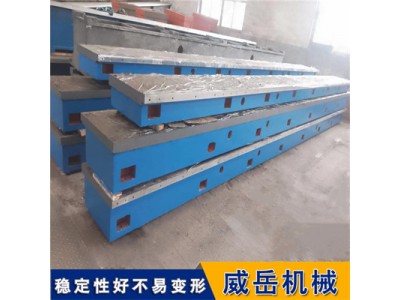 T型槽地轨材质为优强度灰口铸铁HT200-250,工作面硬度为HB170-240,铸件经过两次人工退火600℃-700℃或自然时效2-3年,完全去除内应力,精度稳定,耐磨性能好。