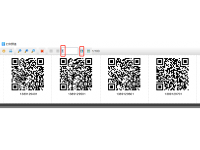 5. 制作完成之后,点击软件顶部的“打印”按钮,在打开的窗口中根据需要设置数据量(这里设置为1000),开始页码为1,点击结束页码后面的“尾页”,然后点击下面的“预览”按钮,翻页查看批量生成的跳号流水号二维码,预览无误就可以直接连接打印机打印出来或者批量输出PDF文档了。
